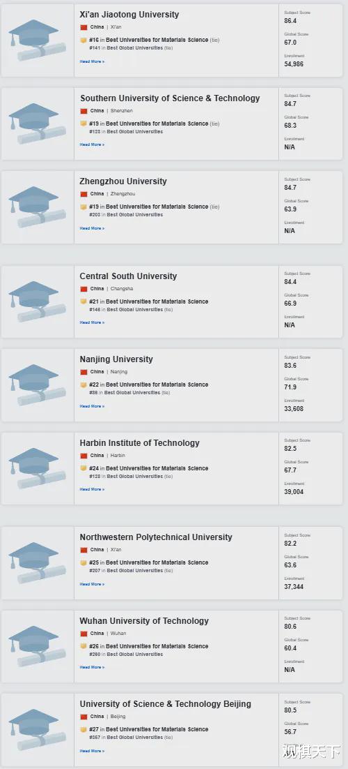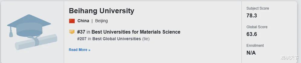 跌得明显的不止北航一家,武汉理工,北京科技,西工大,哈工大这些传统材料强校,排名都往下掉了不少,北科大第四轮评估拿了A,第五轮官宣进入第一方阵前列,但U.S.News排名也不算靠前,东北大学第四轮A-,这次只排到大陆第40,话说回来,这几所学校的材料学科偏应用,偏工程,很多成果转化成了实际产品而不是论文,吃亏就吃在这儿。