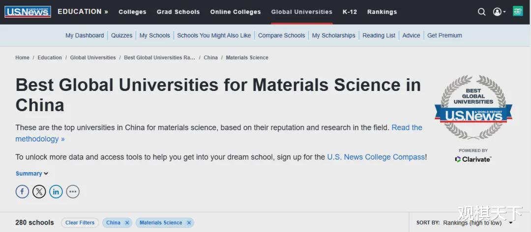 真要报材料相关专业,我的建议还是优先看学科评估和一流学科名单,这是教育部的官方体检报告,再结合行业口碑,保研率,就业去向这些实打实的指标来判断,U.S.News的排名,当个参考,开开眼界就行。