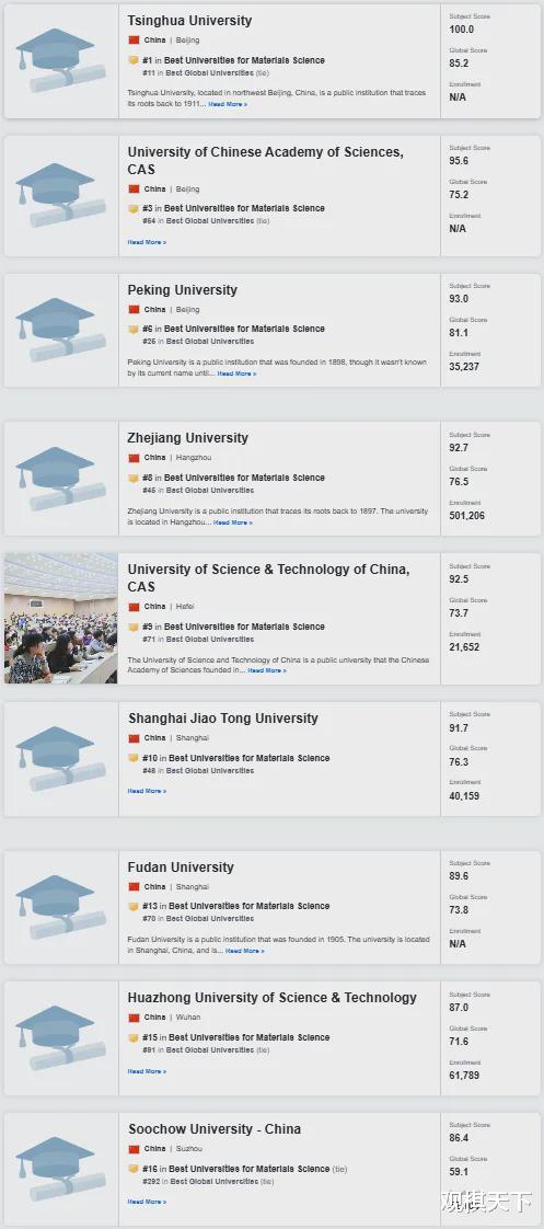 U.S.News材料排名本质上就是看论文,而且它对材料的界定很宽泛,化学,化工,物理,电子领域的学者只要在材料相关期刊发了文章都算,这就导致一些综合性大学,化学强校天然占便宜,北大材料连第四轮学科评估都没参加,第五轮也没传出什么亮眼成绩,照样能排全球第6,你说这排名能直接拿来选专业吗?