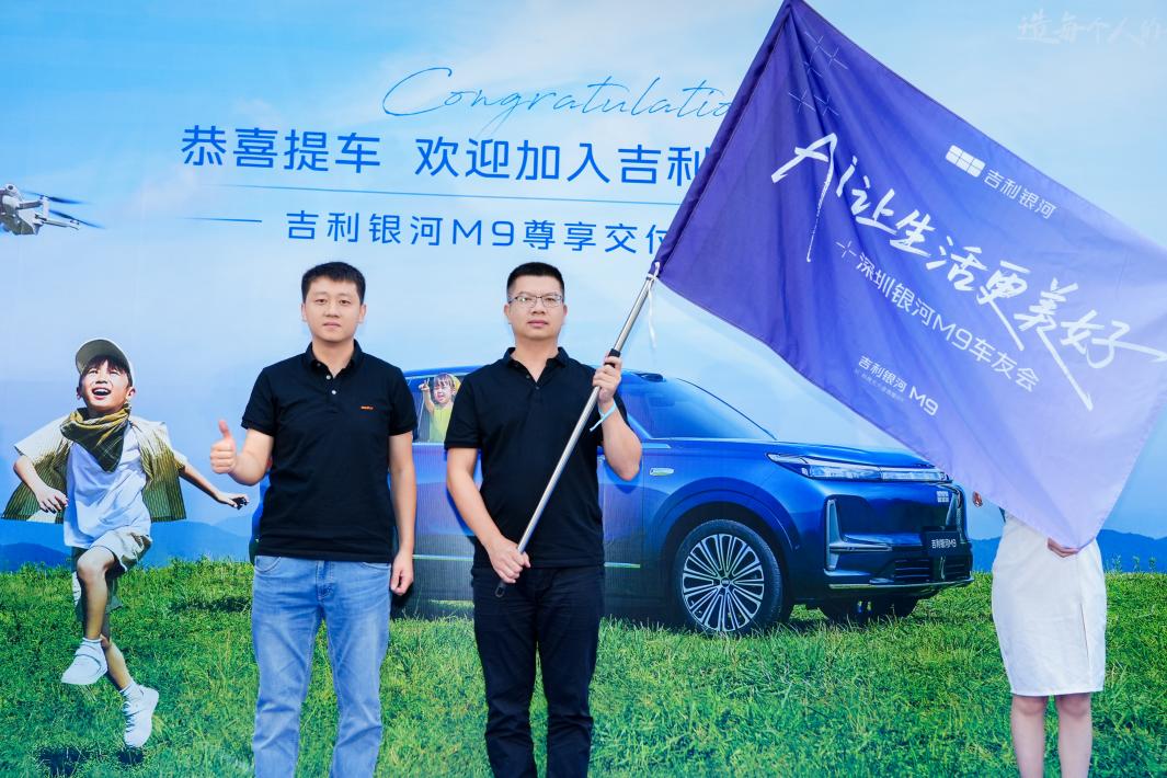 盛典高潮处,吉利品牌代表为深圳银河M9车友会授旗,标志着专属社群正式启航。“这不仅是一场交付,更是志同道合者的集结。”车友会会长表示,未来将和大家一起组织更多车友会活动,让科技产物生长出情感连接。