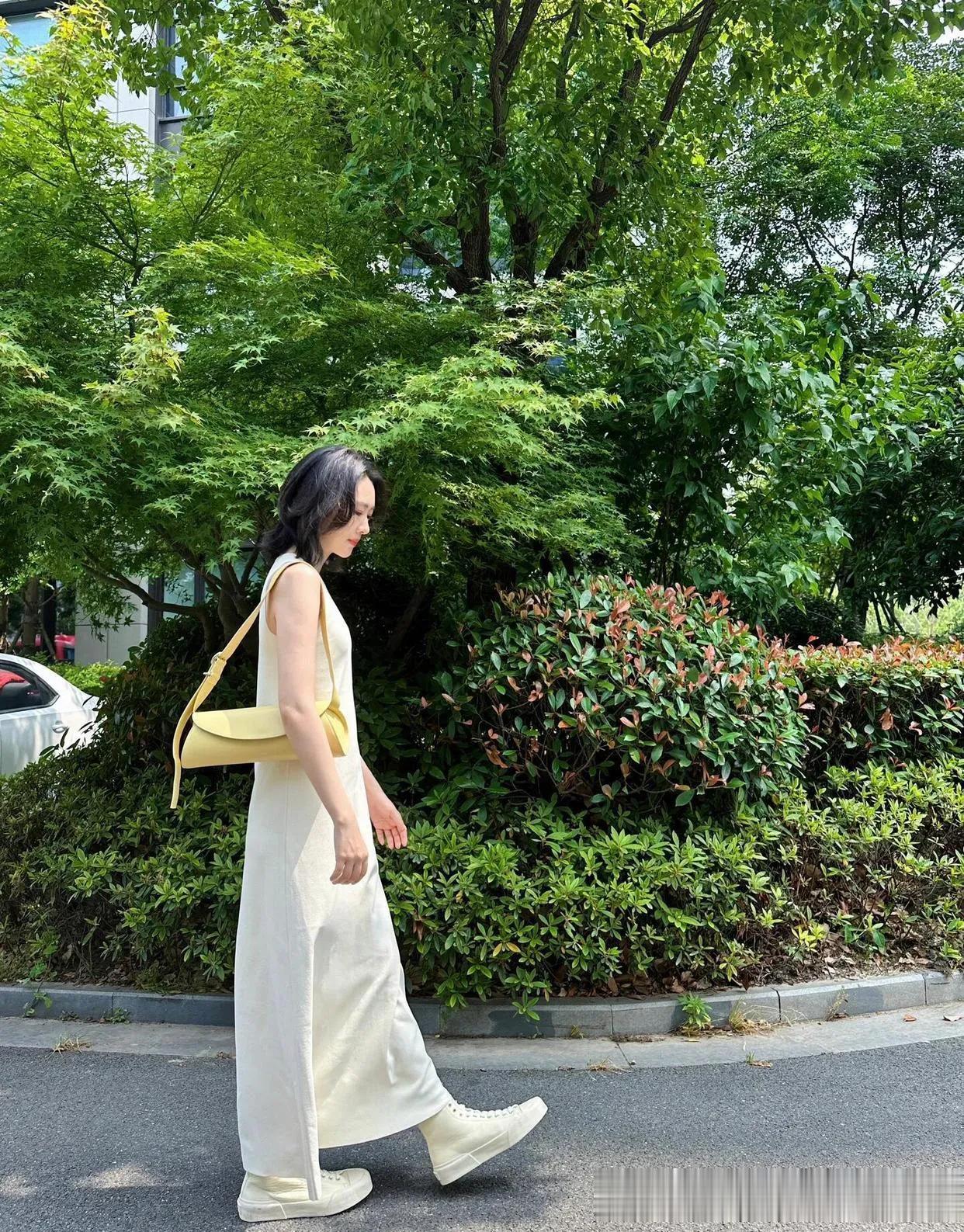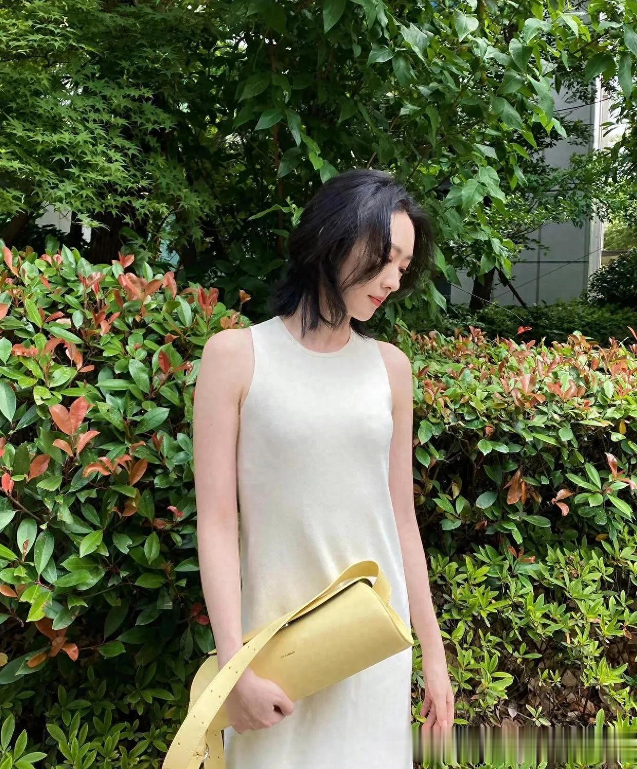 童瑶短发气质真好!一袭无袖小白裙+平底鞋,休闲随性又高级!