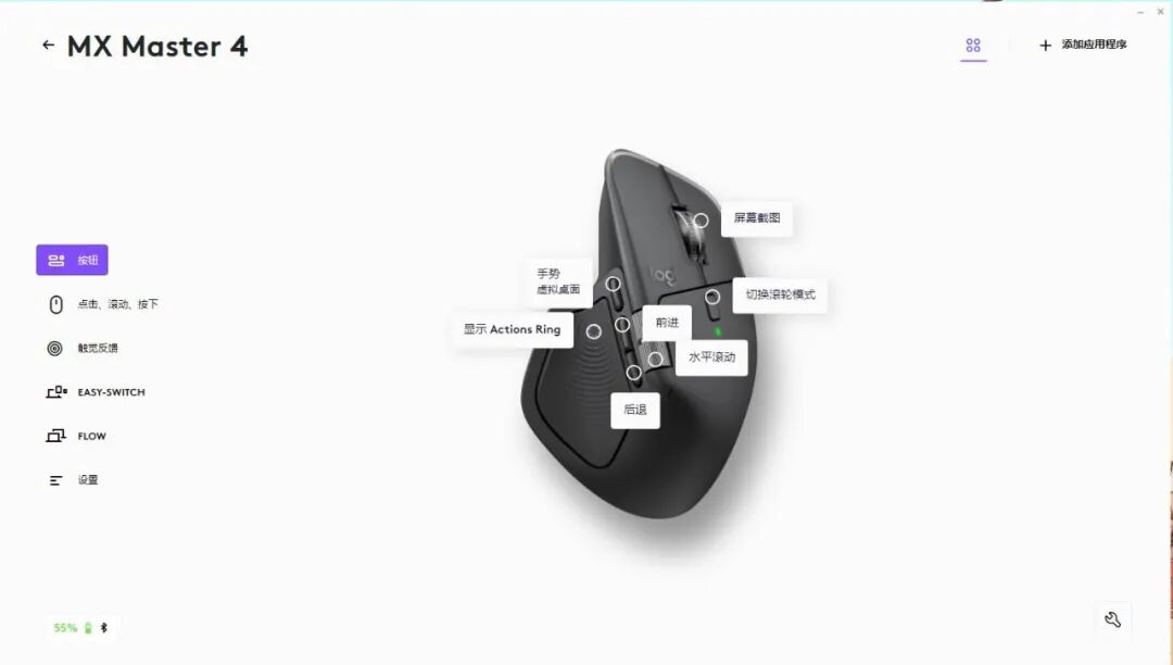 Logi Options+过去只是对鼠标进行参数调整的一个“附赠”应用,随着罗技MX Master 4越来越多的功能加入,Actions Ring智能行动环、FLOW、Smart Actions都需要依靠Logi Options+来进行设置,甚至是更多第三方应用程序的快捷定制也同样需要Logi Options +来进行设置,Logi Options +俨然成为“生产力神器”。