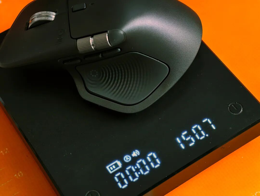 在如今鼠标轻量化的今天,罗技为何依旧坚持做一个重量达到150克重量的旗舰无线鼠标?我们来看看鼠标里都有些什么,8000DPI的DarkFled高精度传感器、两个金属滚轮、650mAh电池、甚至还有搭配触觉反馈的反馈马达,将这些东西高度集成在一个巴掌大的鼠标上,将重量控制在150克我相信罗技工程师已经做了很大的努力了。