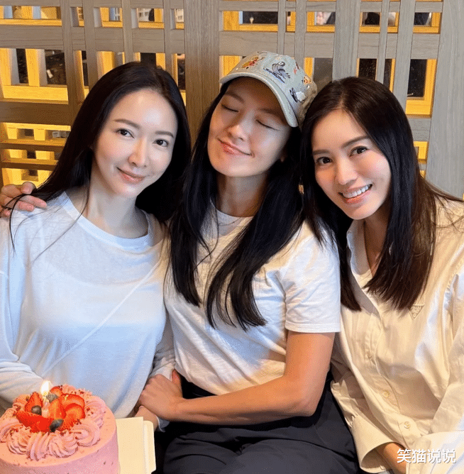 蔡依伦和铃木洁也穿着白色的衣服,她们两个是坐在林熙蕾的两侧,两人都靠着林熙蕾合照。三人,紧紧挨在一起,面对着镜头露出了甜美的笑容。