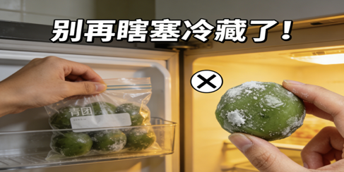90%的人都毁在这一步!把青团随手塞进冷藏,结果第二天蒸半天还是嚼不动。专业来说,糯米中的淀粉在0-4℃会快速“回生”,这就是青团变硬的元凶。