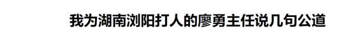近日,网上有一篇题目为《我为湖南浏阳打人的廖勇主任说几句公道话》火了,文章发布了不到24小时,阅读已经突破134万,光评论就超过3万条,火得是一塌糊涂。
