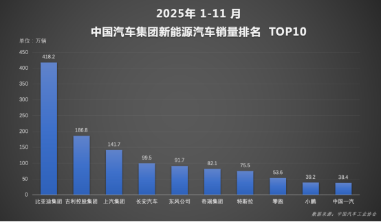 从累计数据来看,比亚迪2025年1-11月总销量已达418.2万辆,同比增长11.3%,全年目标完成率超过九成。随着12月冲刺阶段到来,比亚迪有望超额完成全年销售目标,进一步巩固市场领先地位。