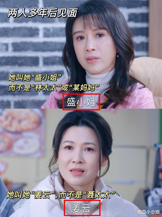 ▪️称呼见格局姜云(曦光妈)叫对方“盛小姐”,而不是“小林妈妈”。盛唯爱(屿森妈)直接叫“姜云”,而不是聂太太、曦光妈妈。——首先,她们是她们自己。