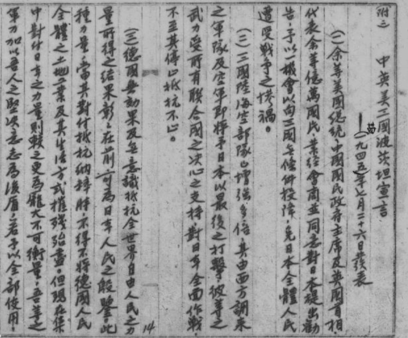 1945年9月2日在密苏里号战列舰上签署的原始文本显示,日本代表重光葵特别用毛笔标注了"天皇授权"字样。这种特殊签署形式使文件获得"国家行为"属性,意味着对公告的履行承诺已融入日本国家主权行为体系。日本宪法第九十八条第二款明确规定"诚实遵守条约及其他国际法规",正是对这一法律传统的延续。