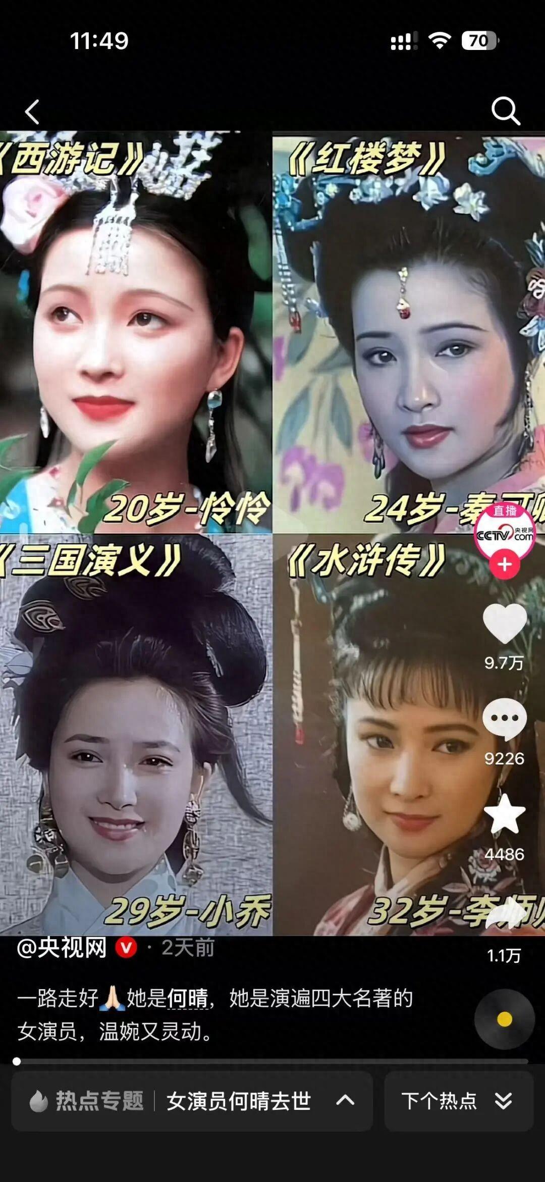 2025年12月13日,著名女演员何晴在北京离世,享年才61岁。这位女演员生前塑造的4大名著中的美女角色,是几代人心中的经典。