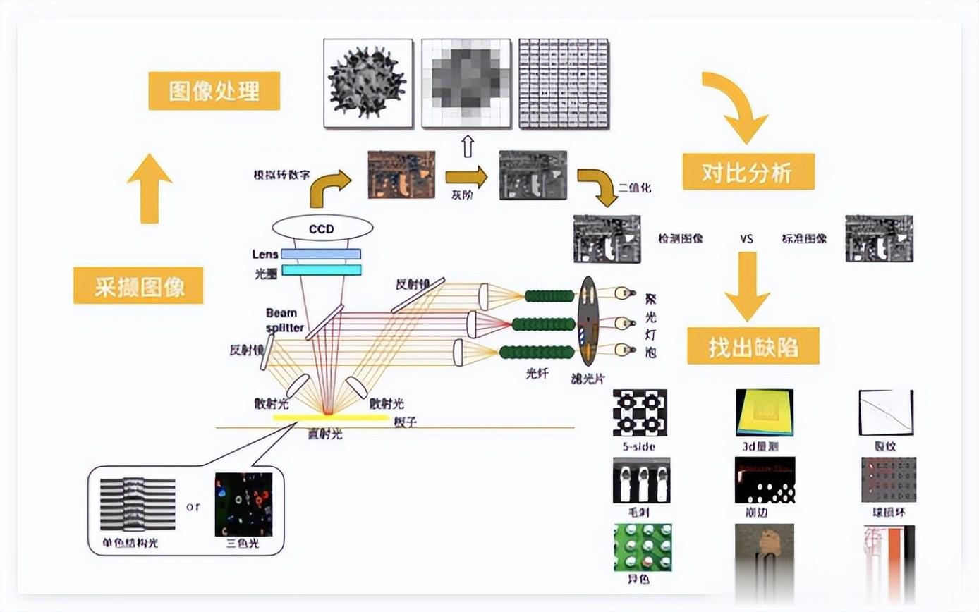 AOI(Automated Optical Inspection)是基于光学成像和图像处理技术的自动检测系统,用于识别产品表面/内部缺陷。