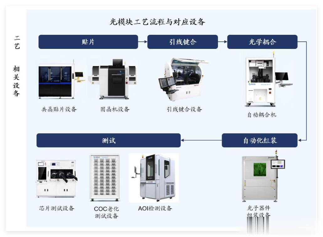 光模块工艺流程及对应设备:
