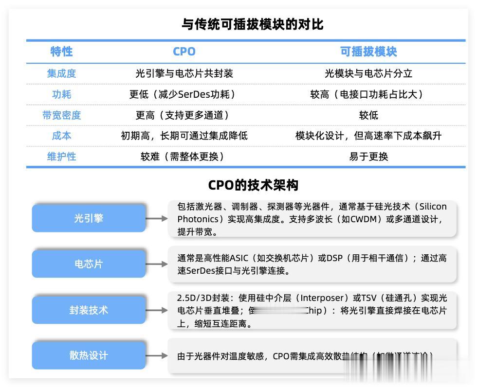 而CPO(共封装光学)作为下一代光互联核心方案,通过将光引擎与电交换芯片集成封装,大幅缩短电信号传输距离,成为数据中心超算、AI集群等场景的关键技术路径。