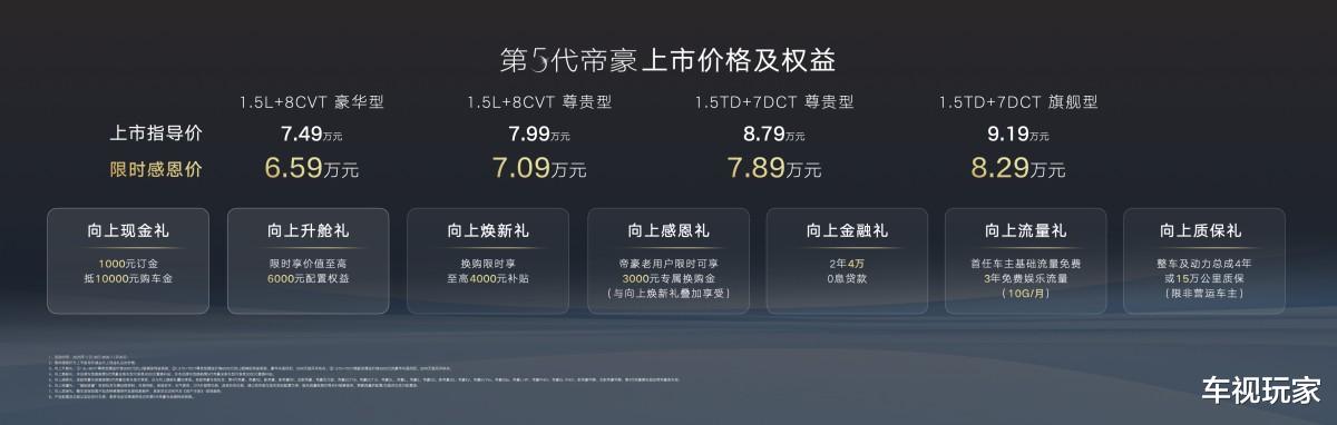 而第五代帝豪的登场,彻底打破了这一格局:6.59万就能买到准B级空间、智能座舱、全面安全配置,8.29万顶配即可拥有高阶辅助驾驶,再加上1000抵10000、至高4000元换购补贴等7重豪礼,这种“价值感”,是合资车型永远无法给出的答案。它用实力证明:中国品牌早已不是“性价比代名词”,而是“价值引领者”。