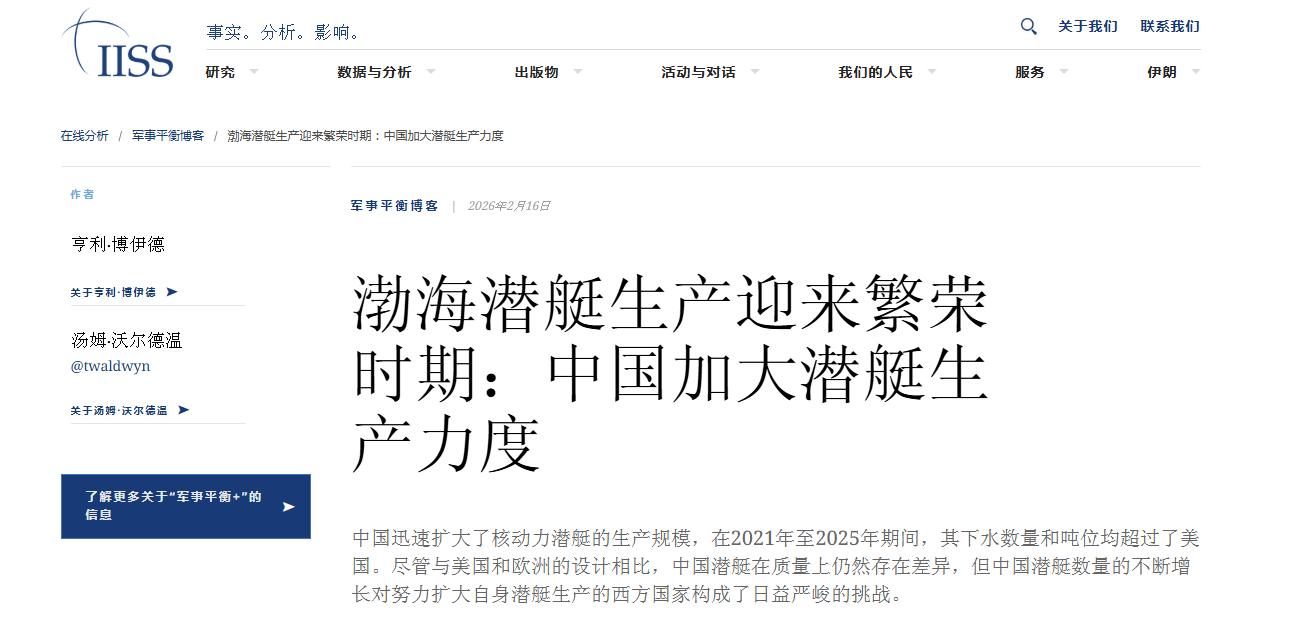 潜艇数量对比逆转英国国际战略研究所的报告在西方军事圈引起波澜。报告显示在2021-2025年间,中国下水10艘核潜艇,总吨位7.9万吨,而美国同期下水7艘,总吨位5.55万吨。