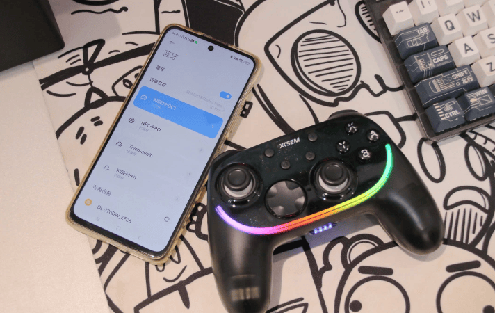 作为主打跨平台的机型,它支持有线+蓝牙+2.4G三模连接,切换逻辑清晰,PC、Steam、Switch都能做到几乎“按键即用”,双人游戏也不易串联。无线传输稳定,10米内延迟感知不明显,适合客厅大屏或多人同屏。内置约800mAh电池,正常游戏可覆盖多日高频使用,配合边用边充体验也比较宽容。两枚背键支持宏定义,动作、射击与竞技类游戏都能提升效率;震动反馈层次较丰富。