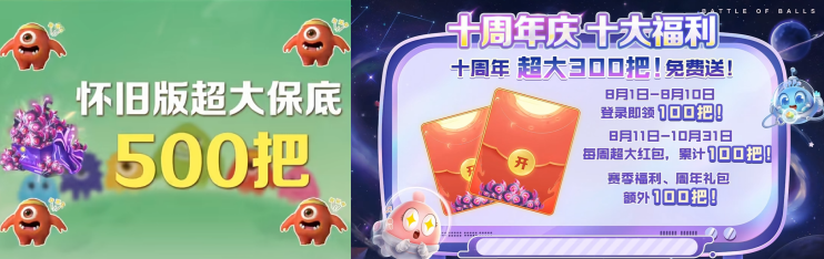 还记得那些年,我们为了一款珍稀皮肤彻夜难眠的日子吗?十年时光流转,8月1日,《球球大作战》十周年庆携手怀旧服,带来史上最良心的"圆梦计划"!800把超大奇妙宝箱钥匙免费送,让你一次性弥补所有遗憾!