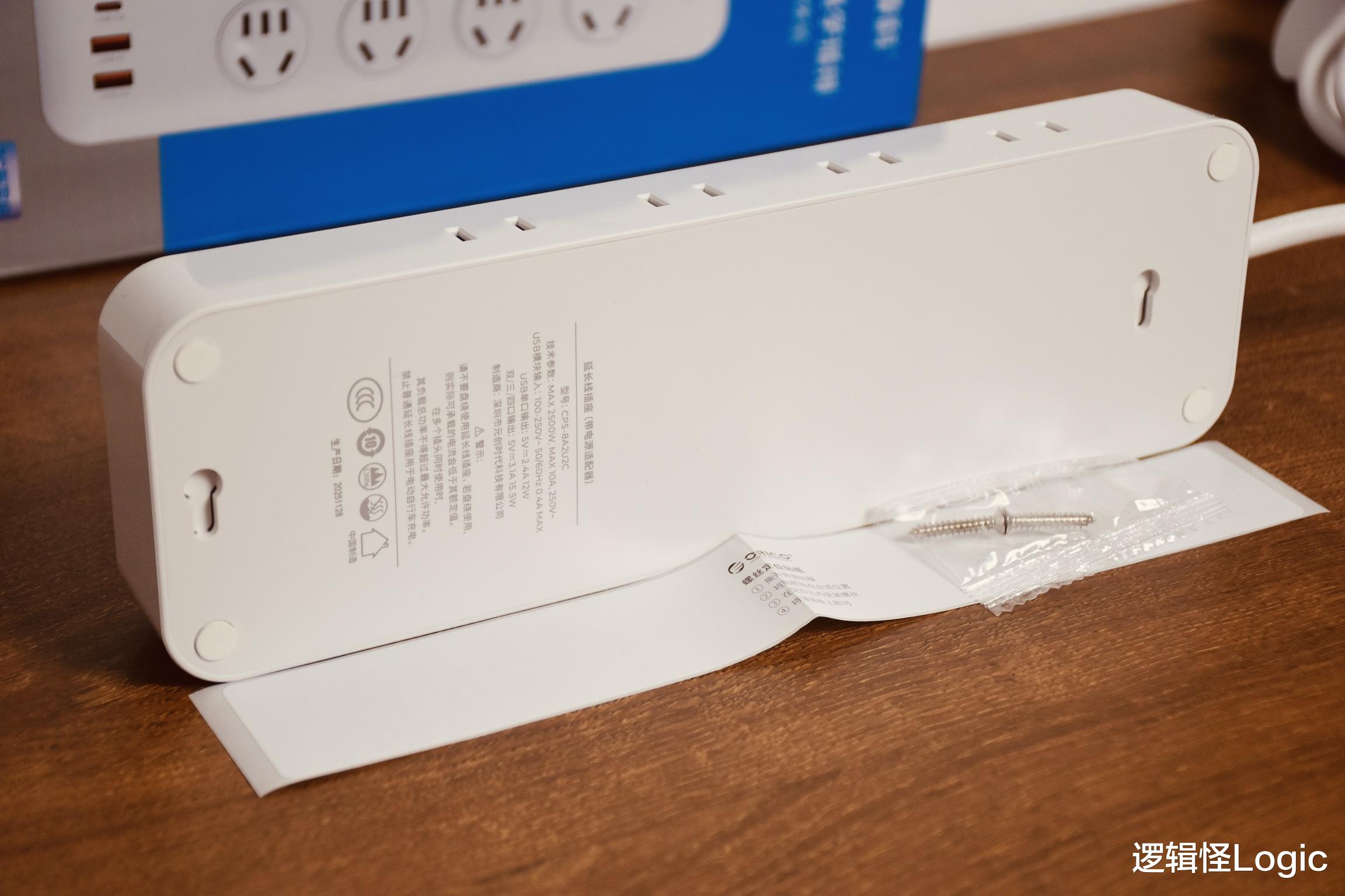 产品标配:插排主体(标配线长提供0.8米)、螺丝定位贴纸、2颗上墙螺丝、说明书、产品信息卡。