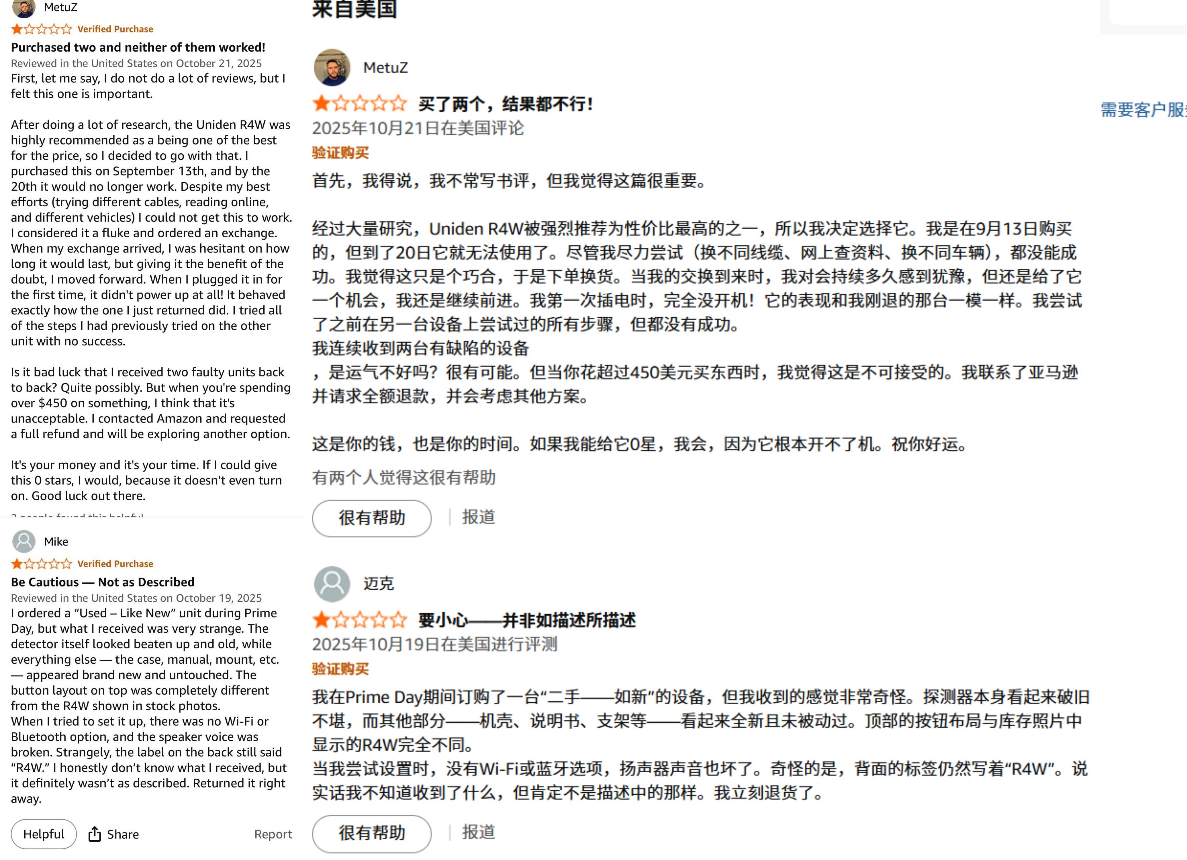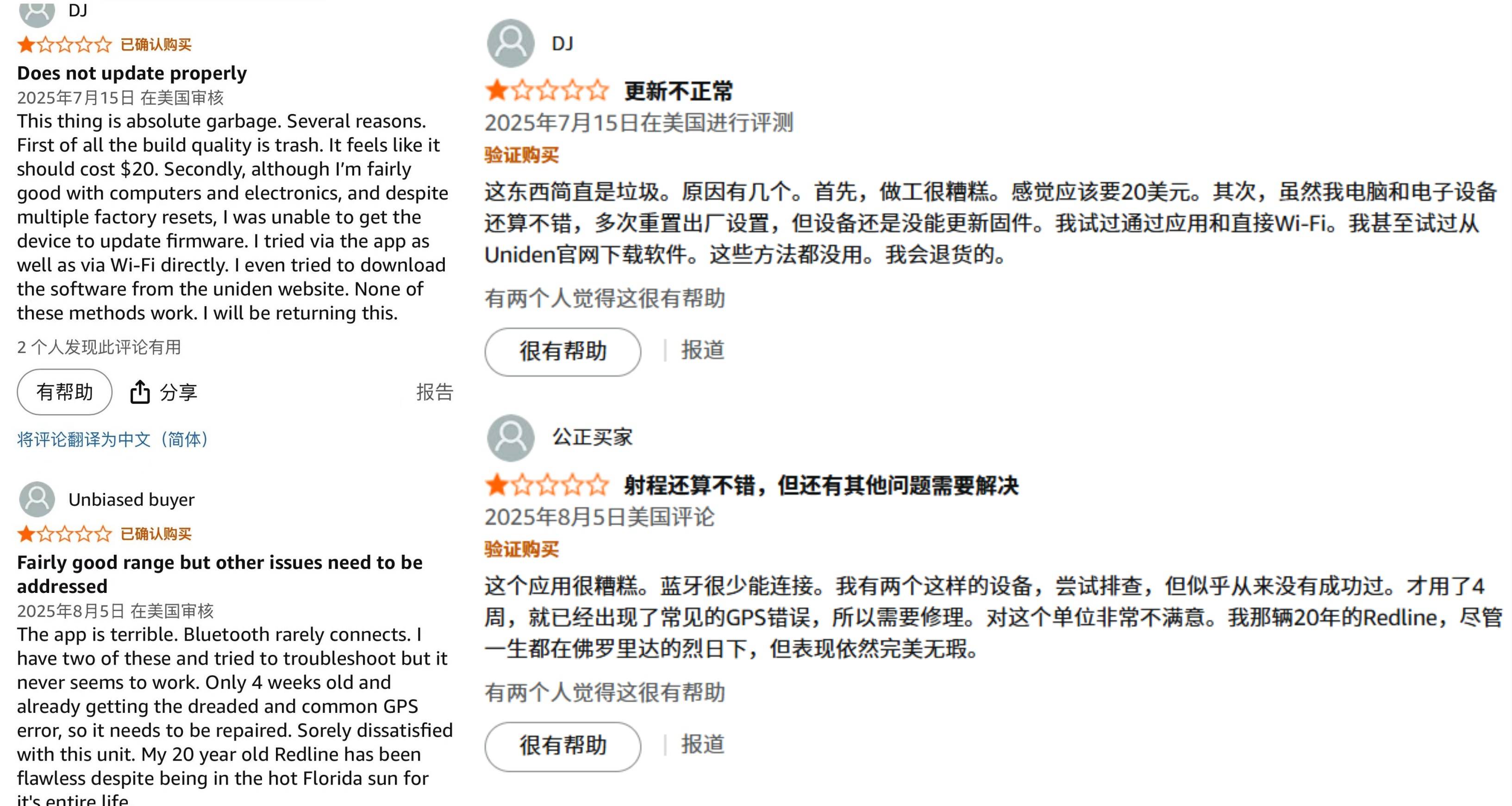 需要注意的是,友利电品牌的一些产品,如 Uniden 友利电 R4w R8w,存在灵敏度不高、漏报和乱叫的问题,可能是排除干扰程序不够严谨。Uniden非日本友利电电子狗R8WR4WR9W因设计缺陷导致乱叫和漏报的原因