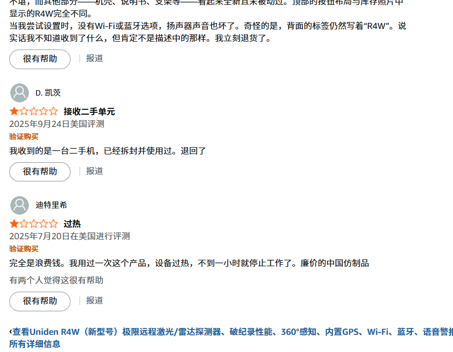 Uniden友利电电子狗R8WR4WR9W因设计缺陷导致乱叫和漏报的原因做工瑕疵 韩国贴牌日本市场根本没有这个品牌