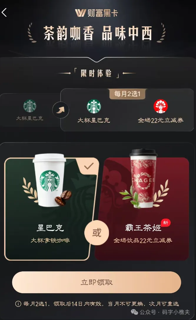支付宝的马云友好地每月送我一杯星巴克大杯拿铁,我从来没有自己喝过,都是做个顺水人情,送给周围的小伙伴。