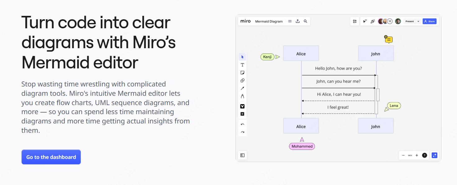 02 Miro:企业级协作平台的Mermaid集成核心定位:为大型团队提供企业级白板协作,Mermaid是其众多功能之一