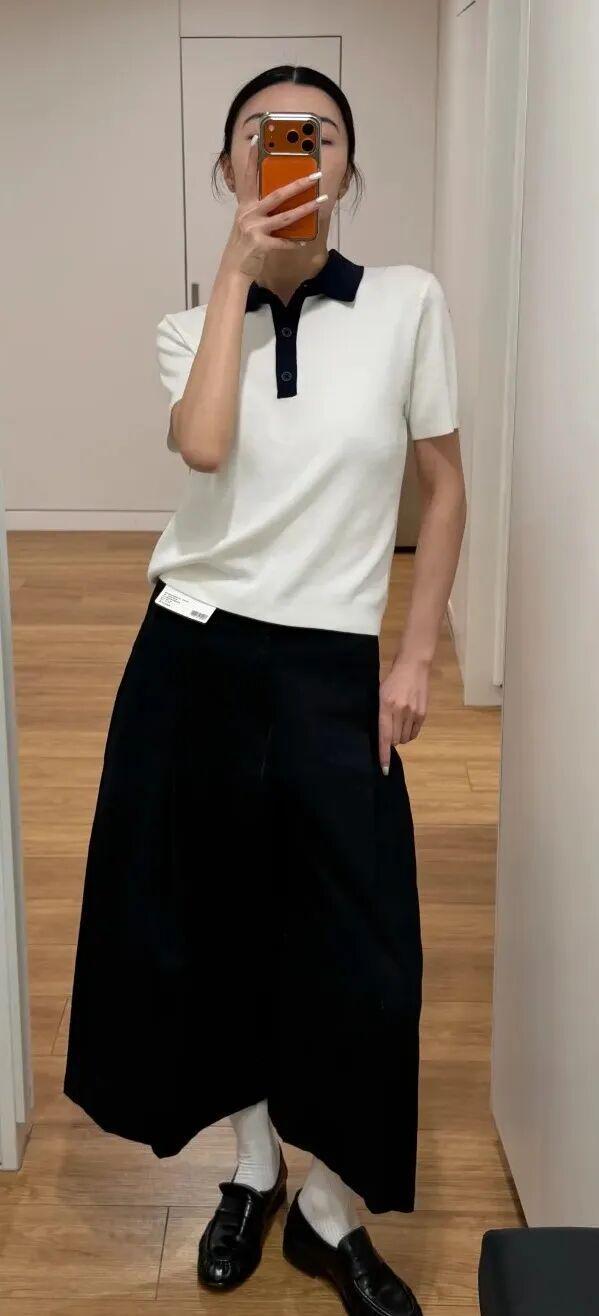 优衣库系列的针织 Polo 衫 + 乐福鞋穿搭,主打简约 Clean Fit 路线。
