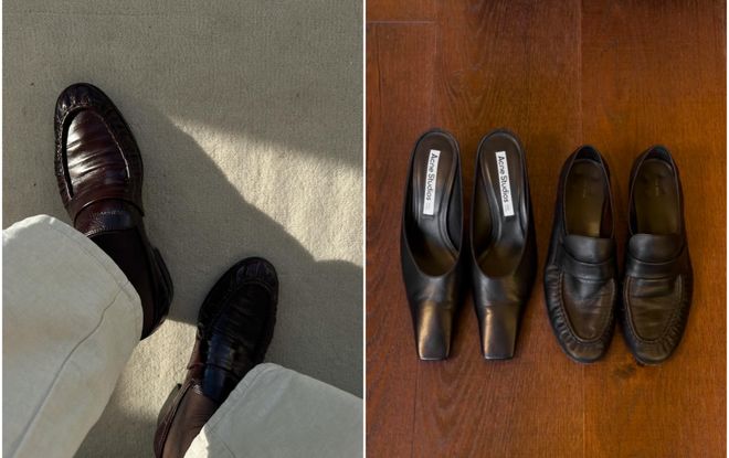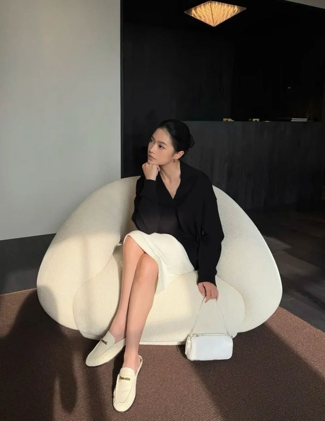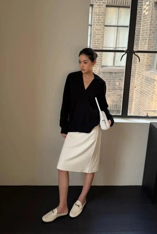 静奢感乐福鞋穿搭以THE ROW黑白类款式为核心参考,完美契合品牌极简静奢的调性,主打“少即是多”,