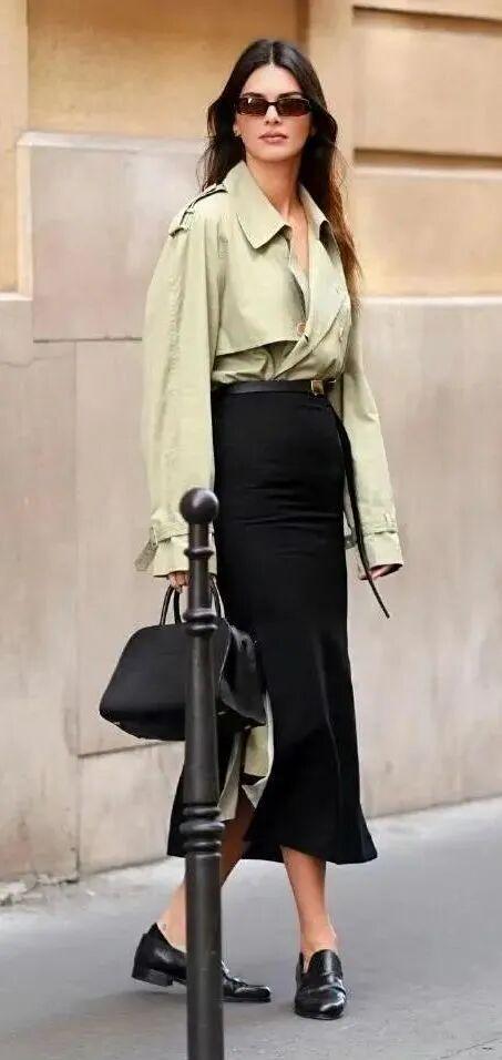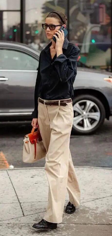 风格适配方面,低饱和纯色上衣 + 卡其阔腿裤 / 直筒牛仔裤,平价显低调质感;极简静奢风搭薄底软皮乐福鞋,同色系简约剪裁单品凸显 “老钱” 松弛感。