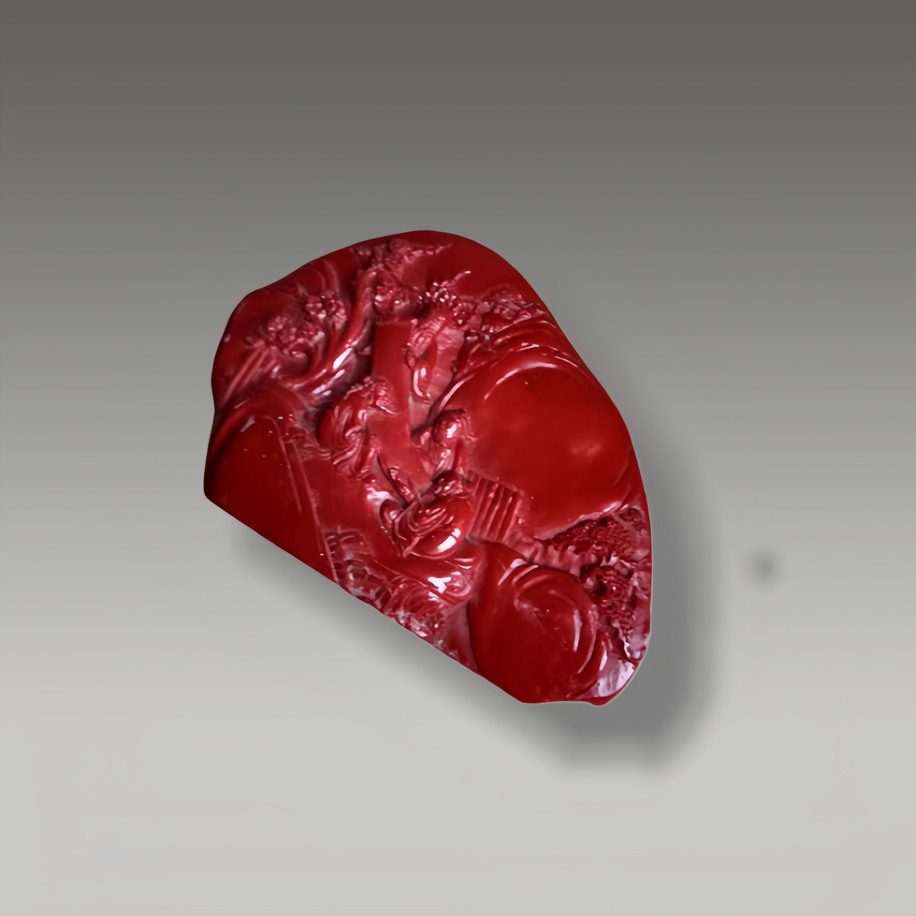 朱红凝韵,如来慈容庄严,衣纹流畅,雕工精湛,珊瑚纳福,是禅意陈设、祈福的臻品