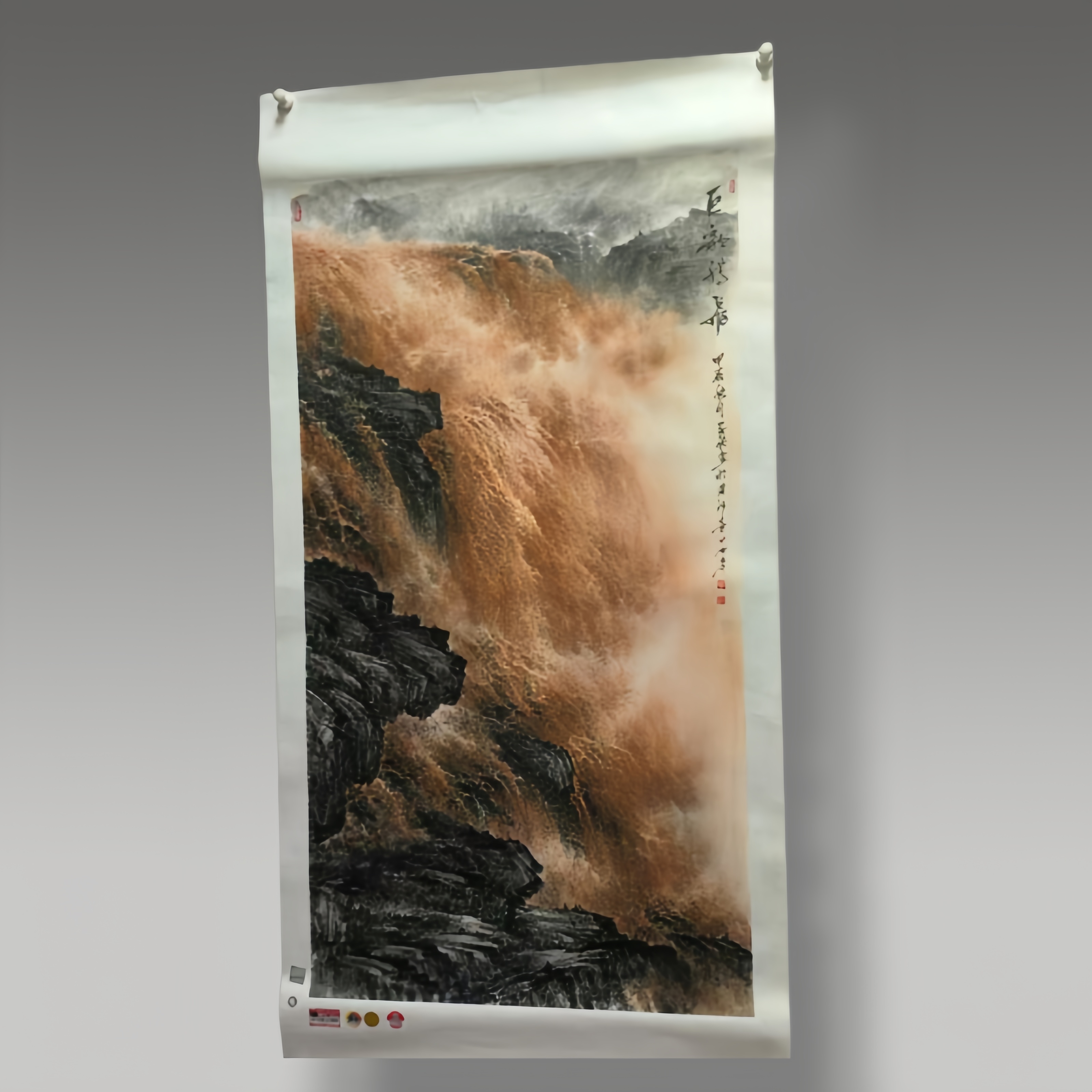 巨龙腾飞,黄河奔涌,金浪滔天撼山河。墨色苍劲绘雄魂,气势磅礴贯长虹,尽显华夏山河的雄浑壮阔与磅礴生命力