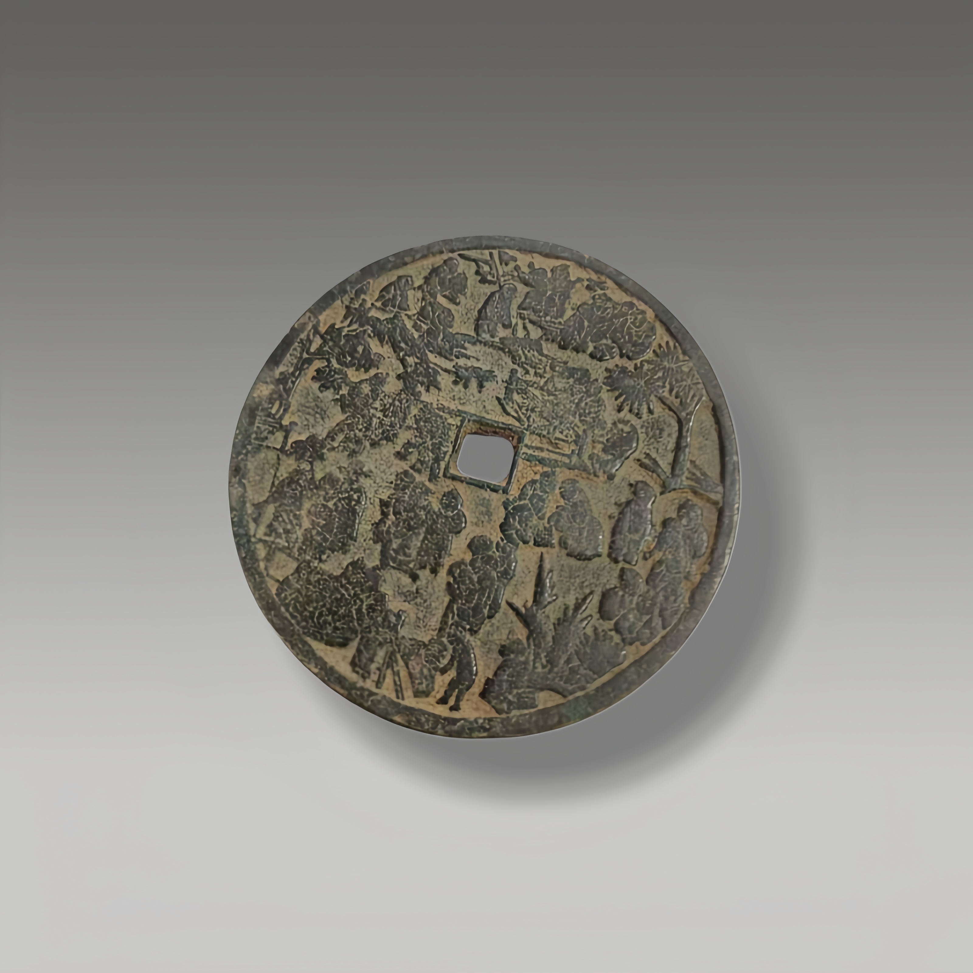 这枚钱币雕工精湛,人物神态栩栩如生,包浆温润厚重,纹路清晰,尽显岁月沉淀的质感与匠心