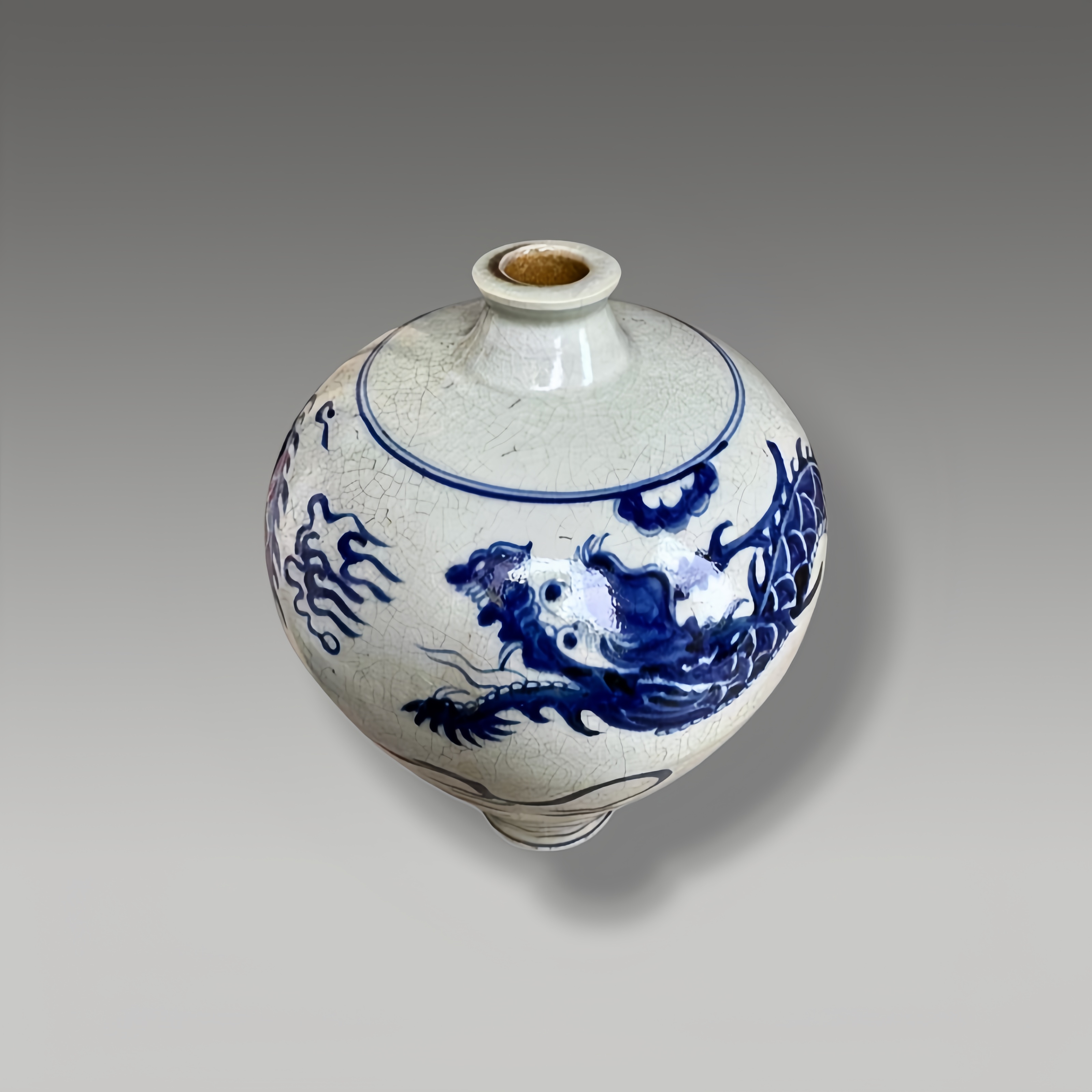 龙纹矫健盘绕,凤纹灵动舒展,兽柄古朴苍劲,青花浓淡相宜,古韵雄浑,尽显古瓷之威严