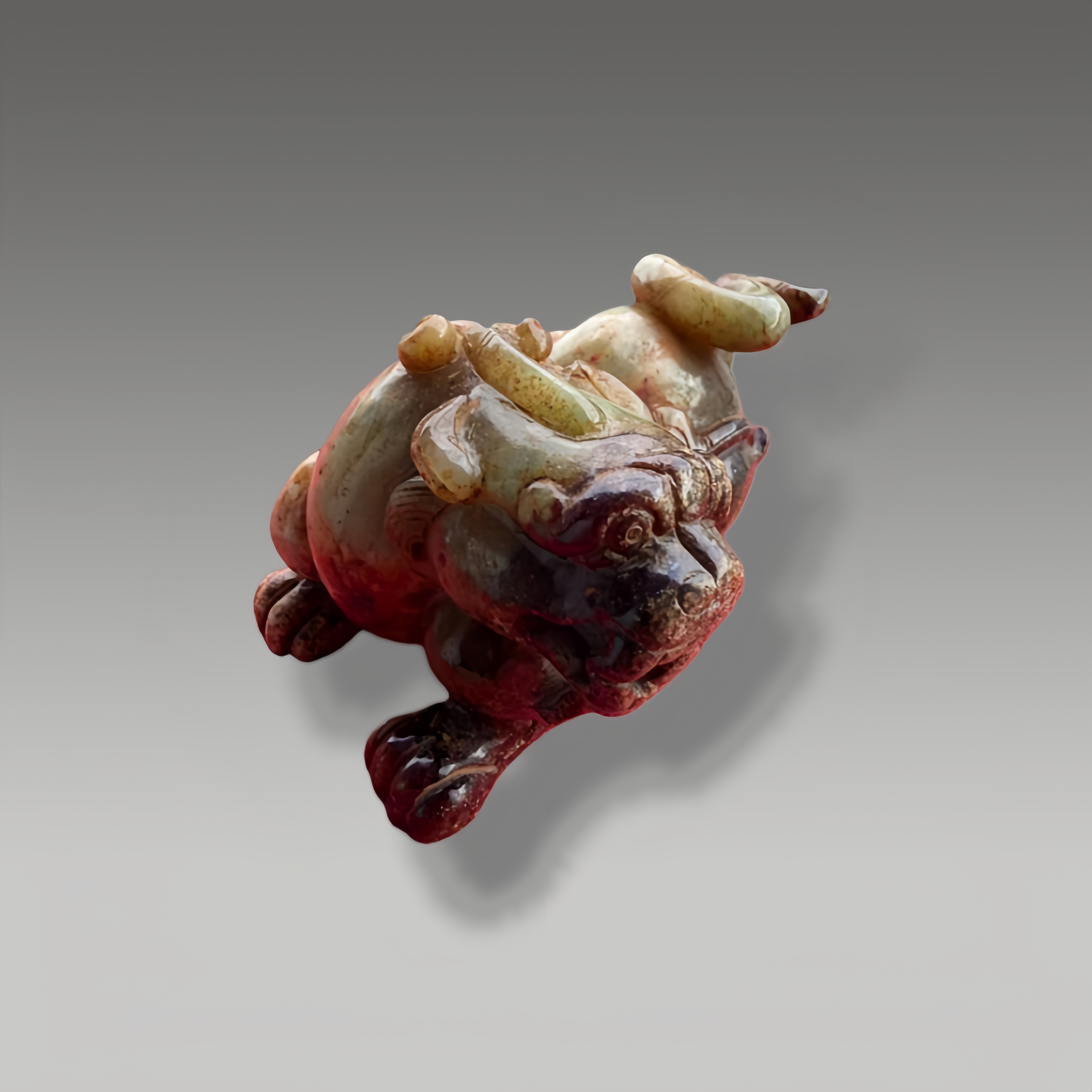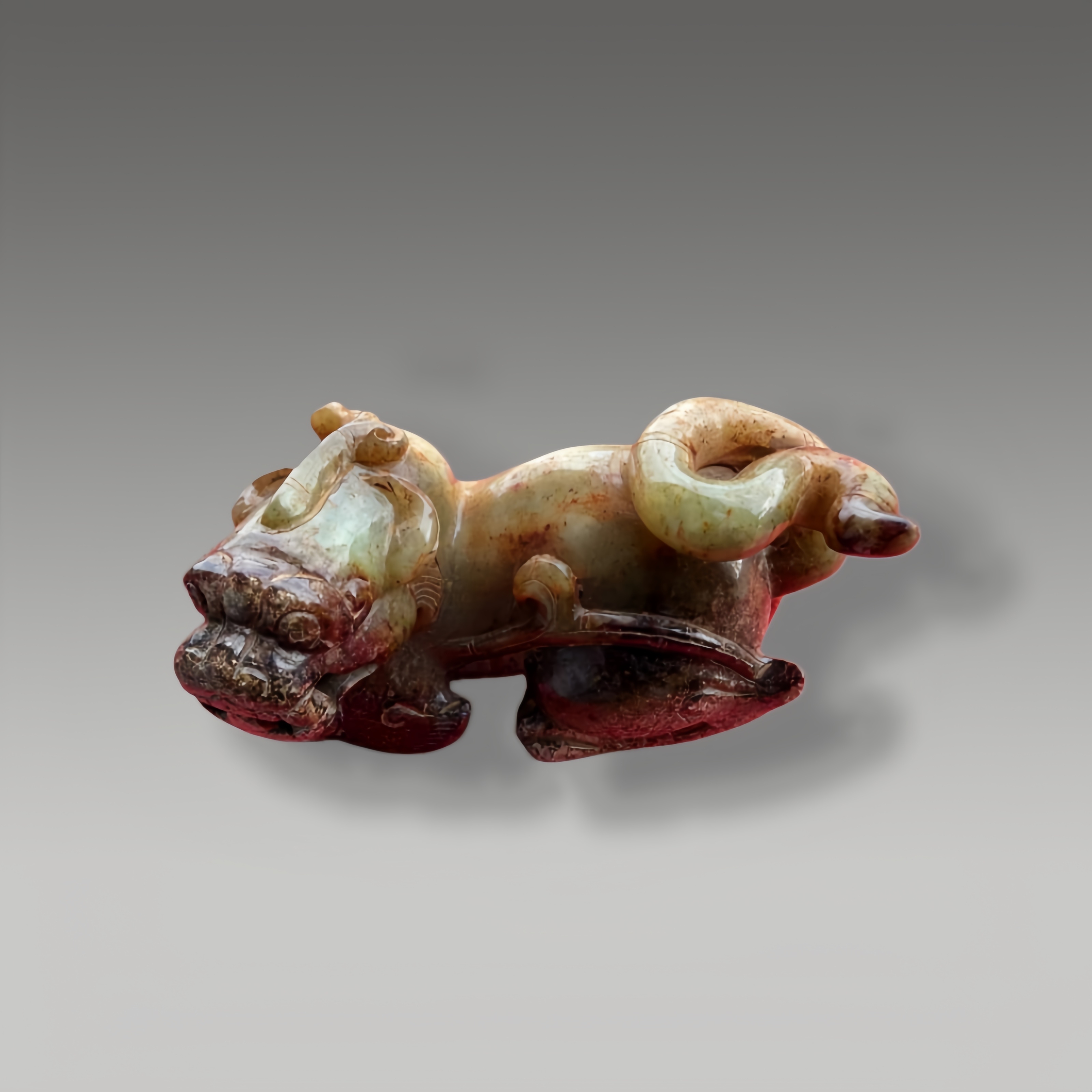 和田古玉瑞兽,雕工精湛,沁色斑斓,造型威猛灵动,镇宅纳福,传世珍品,尽显古玉风华
