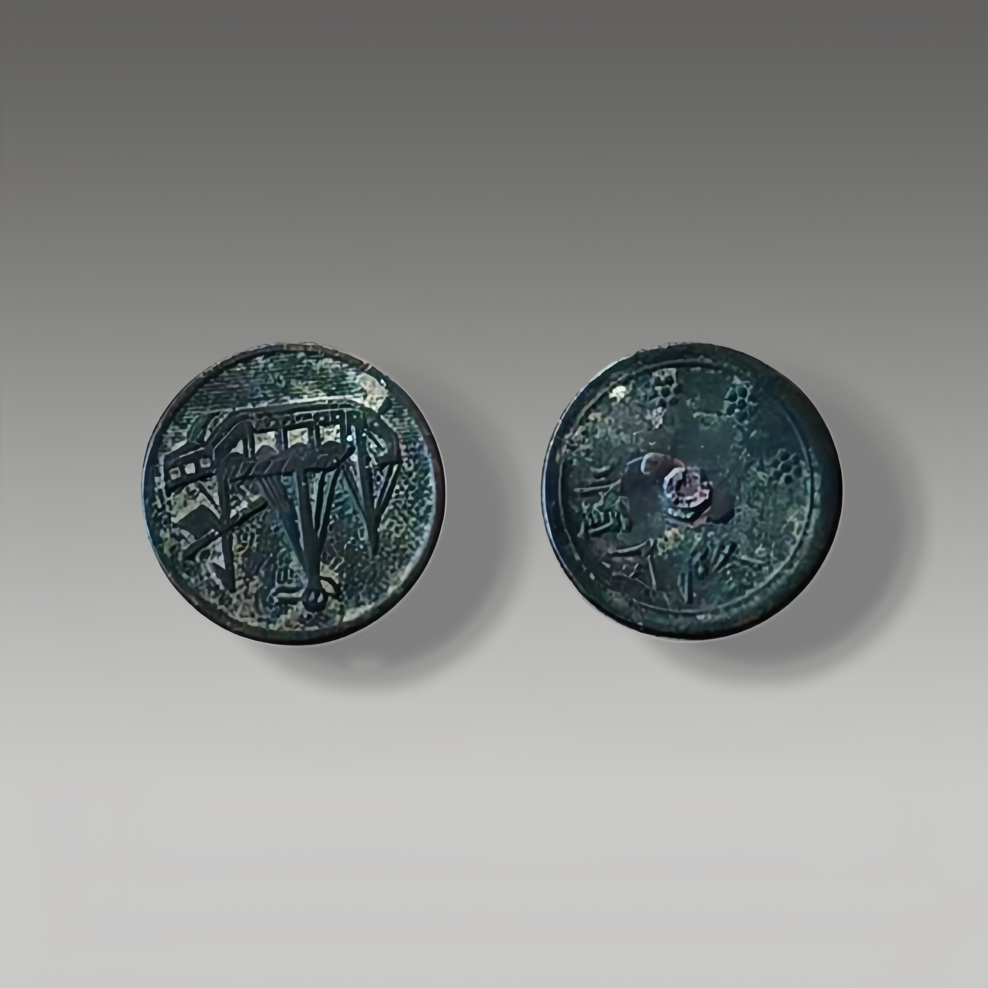 这枚古铜,绘飞机载着旧时光的巧思,刻文字藏着岁月沉淀的温度,锈色里尽是匠心与故事