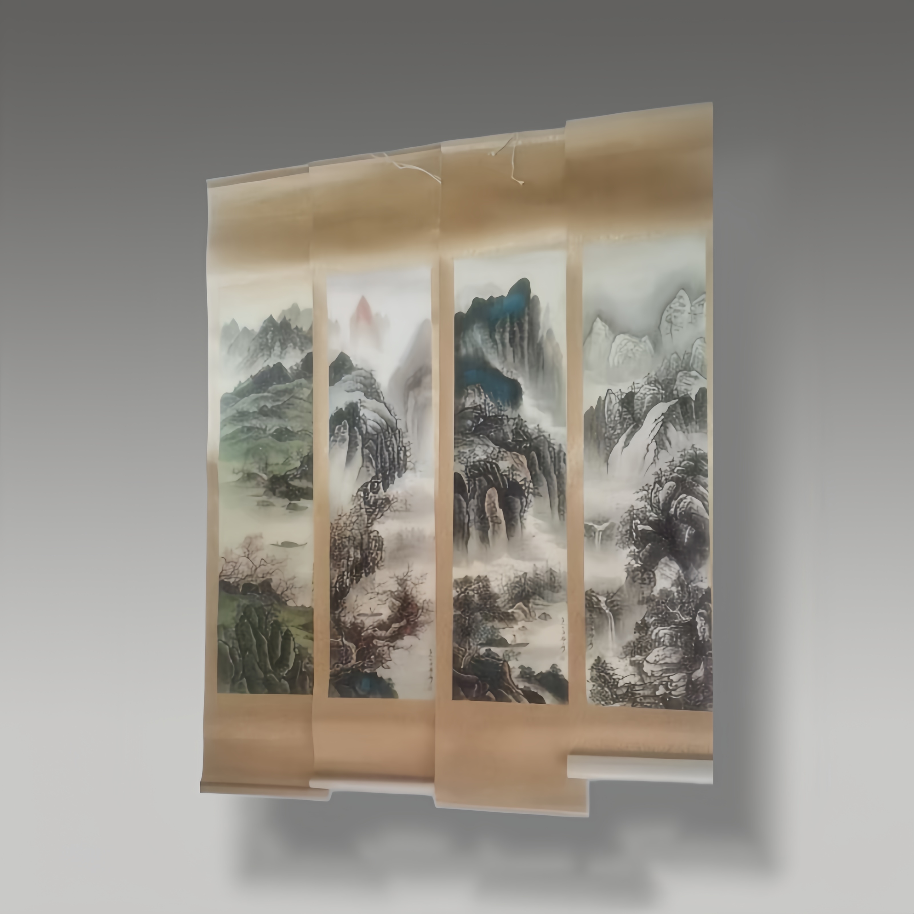 四屏山水墨韵悠长,峰峦叠翠,林壑幽深,笔墨苍润,意境悠远,尽显传统山水的清雅风骨与文人意趣