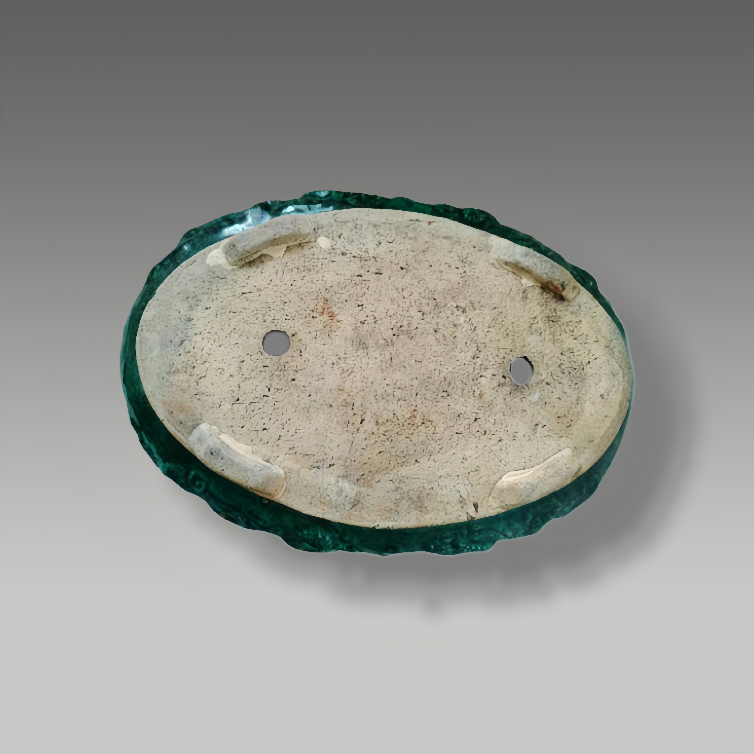 此盆绿釉莹润如翠,堆塑双龙矫健灵动,戏珠纹栩栩如生,器型沉稳大气,尽显古朴雄浑的东方气韵与匠人巧思