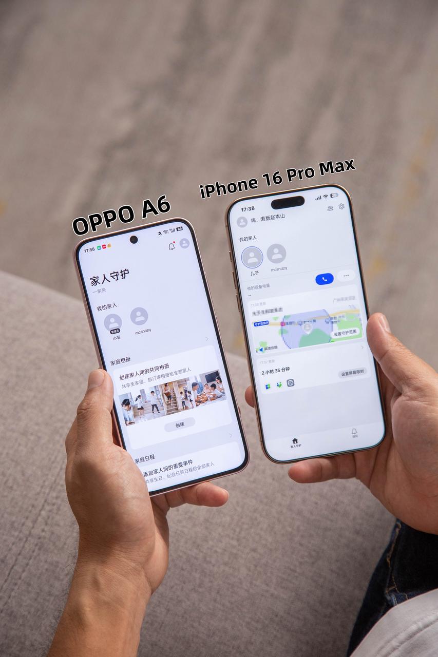 除了流畅外,OPPO A6这次还有个有意思的功能,自带的家人守护功能还可以跟iPhone联动(安卓其他品牌当然也是可以的),这样就可以跨平台的随时随地的知道家里人的一些情况,比起以前只能自家品牌之间的互动,OPPO A6这个可真是太实用了。