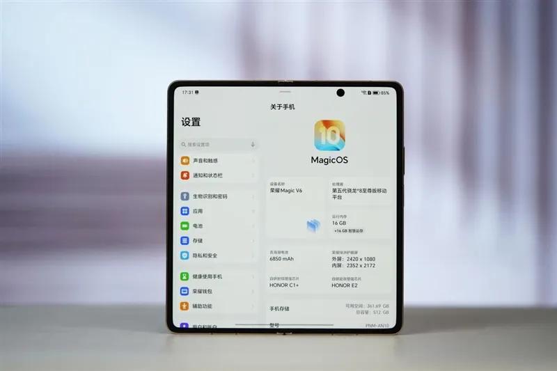 1、整机的外观相比荣耀Magic V5基本没啥太大的调整,可能缺乏点辨识度。