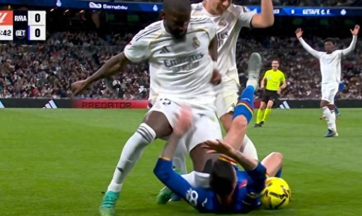 北京时间3月3日凌晨,西甲第26轮上演了一场令伯纳乌窒息的冷门。皇家马德里主场0-1不敌赫塔菲,而比失利更让舆论炸锅的,是德国中卫吕迪格一次充满争议的恶劣犯规。