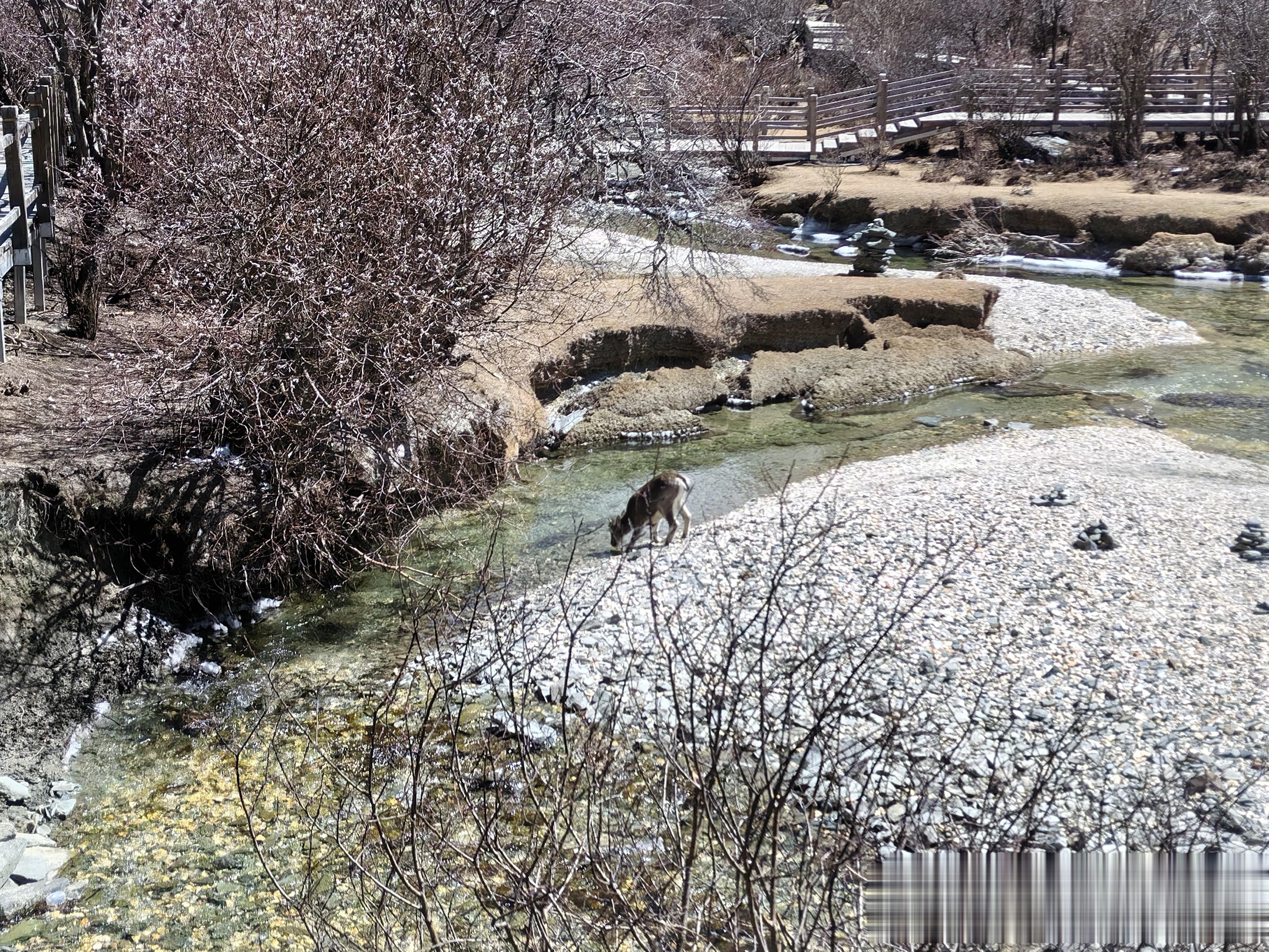 更让我惊喜的是这里的小动物们。松鼠在林间串来串去,一点都不怕人;藏马鸡在树枝下悠闲地觅食;岩羊群在河边饮水,偶尔抬头看看我们这些"入侵者";还有高原山鹑、大噪鹃、红嘴山鸦,它们围着游客,与人和谐相处,几乎零距离接触。我拿出剩下的投喂食品,跟这些小动物们交流,显得格外亲切。这种人与自然的和谐,在城市里是绝对体会不到的。