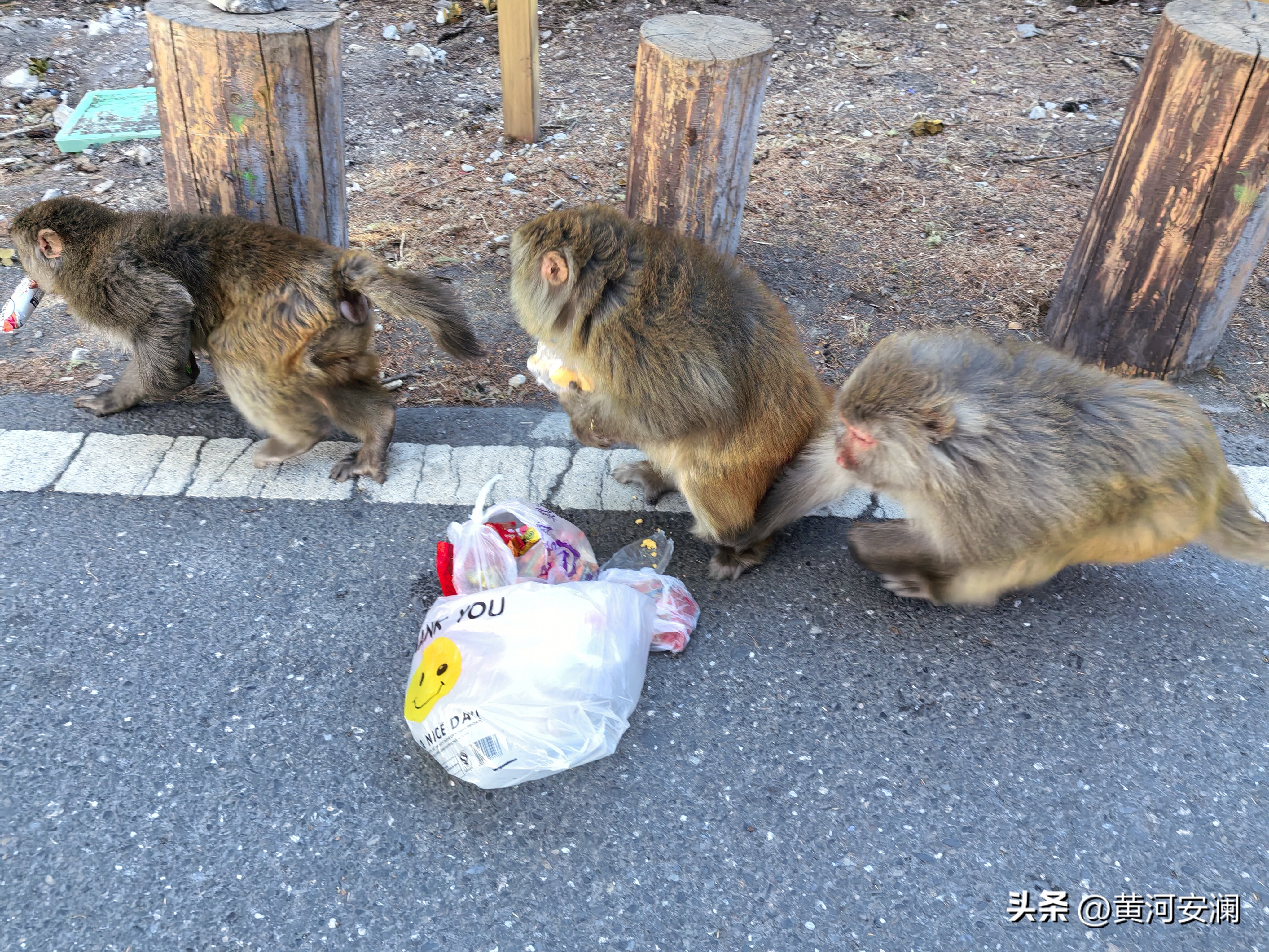 刚一下车,我就受到了"热烈欢迎"。不是来自工作人员,而是一群精灵般的猴子!这些小家伙早就摸清了游客的套路,一看有人下车,立马围了上来。我那精心准备的投喂食品——包子、糖果、饼干、猫耳朵、鸡蛋,还没来得及好好分配,就被它们一股脑儿地瓜分完毕。大猴带着小猴,你争我抢,那场面,热闹得像过年似的。幸亏我兜里还藏着不少奶片、巧克力,这可是我的"战略储备"。看着猴子们吃得津津有味,大猴还会照顾小猴,把好吃的让给它们,这份猴趣,浓郁得很!