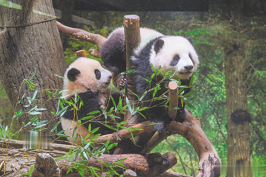 大熊猫晓晓(雄性)和蕾蕾(雌性)