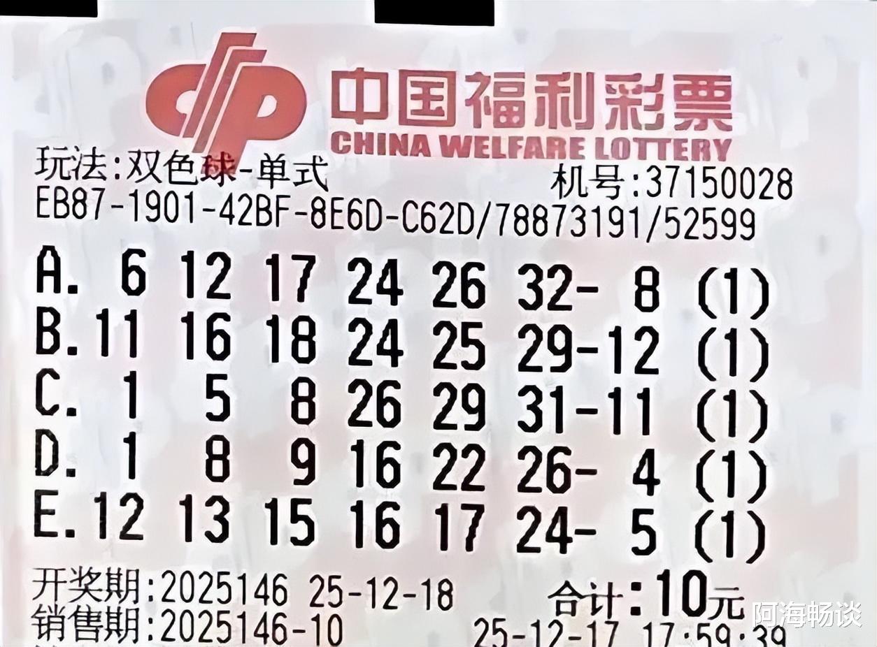 大家好!今天是12月18日,农历十月廿九,星期四。今晚即将迎来双色球第25146期开奖,不少朋友已经晒出了自己的票面。在欣赏本期票面之前,我们先来回顾一下上期(25145期)的开奖情况:红球号码为11、12、15、18、25、32,蓝球为14。一等奖再度实现井喷,开出15注,而此前一期(25144期)更是开出了18注一等奖,连续两期呈现头奖井喷的态势。上一期的15注一等奖分落浙江(3注)、福建(10注)、甘肃(1注)和宁夏(1注)。接下来,就让我们一起走进本期的票面展示环节。同时也提醒大家,要理性对待,希望大家保持平常心,享受过程,量力而行。