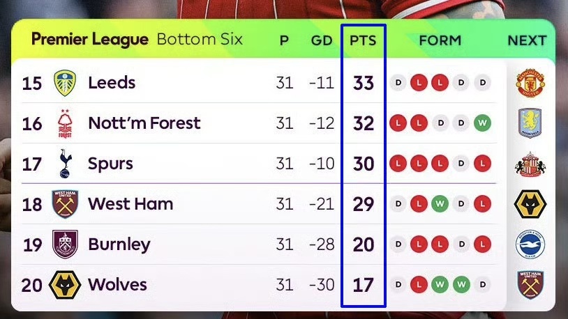 此役过后,英超降级区的形势发生了剧烈动荡。诺丁汉森林凭借这场胜利,积分反超热刺2分,暂时逃离了最危险的区域。而热刺则跌至积分榜倒数第四位,仅领先降级区内的西汉姆联1分。
