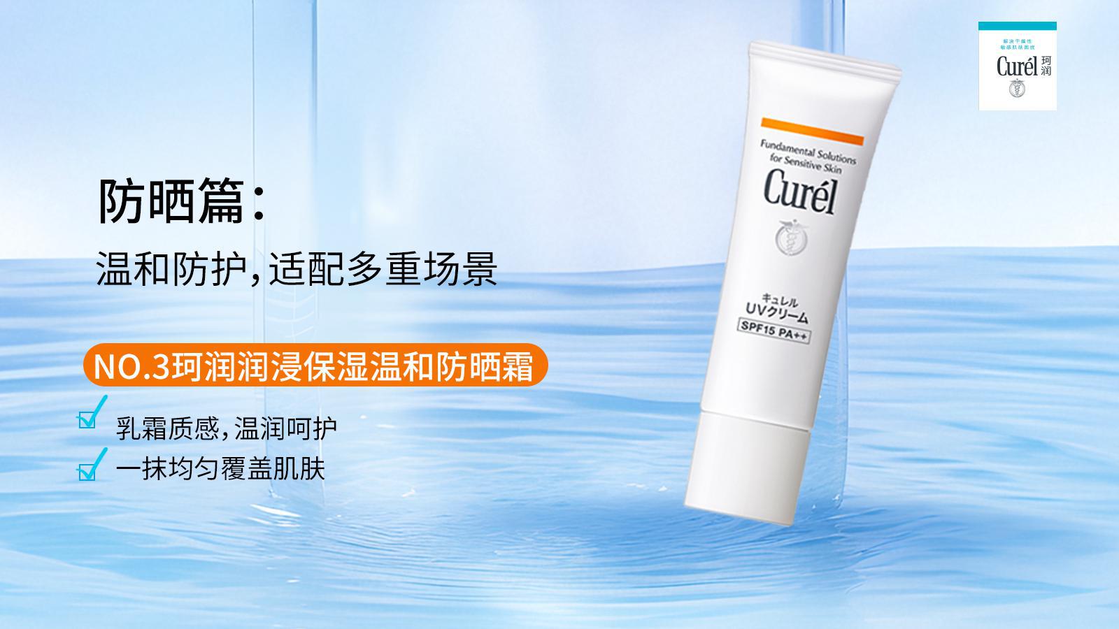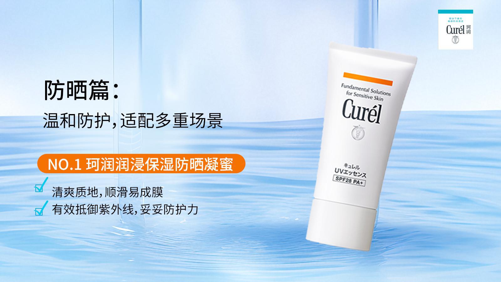 针对不同场景的防晒需求,珂润防晒系列推出了不同质地(凝蜜、乳液、乳霜)与防晒指数(SPF28,PA+/ SPF15,PA+)的产品。无论是户外出游,还是日常通勤,Curél珂润都能给予敏感肌安心防护。