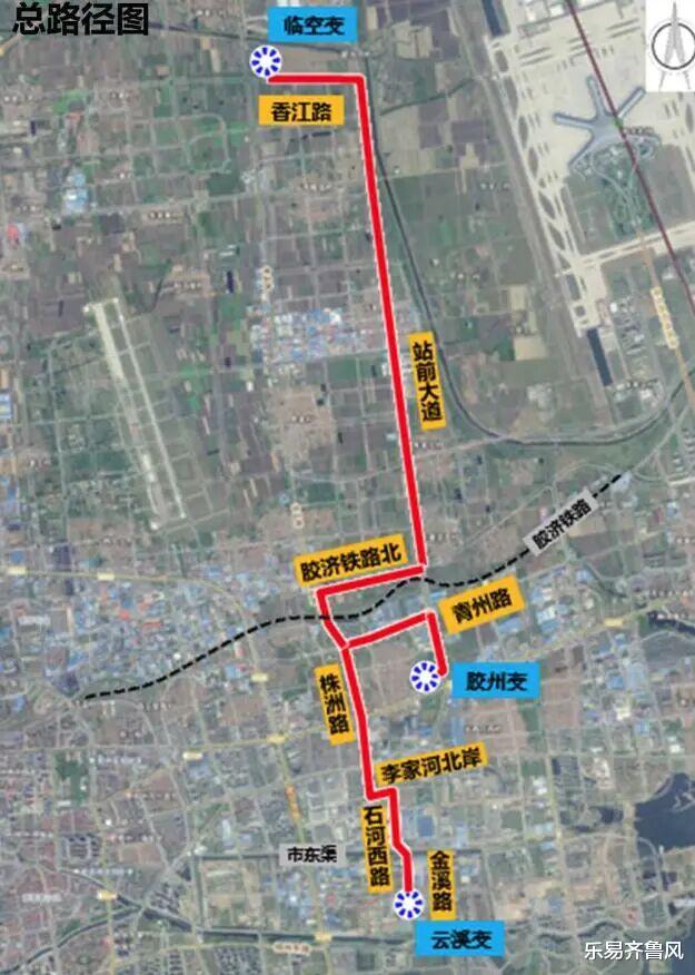 设计管线起点分别由220kV临空变电站及220kV胶州变电站出线,220kV临空变电站出线:管线沿香江路、站前大道、胶济铁路北、株洲路、李家河北岸、石河西路、金溪路敷设至云溪河主所;220kV胶州变电站出线:管线沿站前大道、青州路敷设至株洲路管线汇集点。管线全长约15.47km,全线穿越市东渠1次,穿越胶济铁路1次,穿越204国道1次。(以实际审批结果为准)