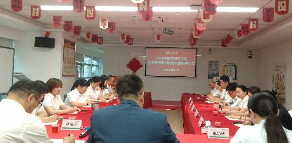 4月24日-25日,中国人寿保险股份有限公司漳州分公司(以下简称“中国人寿漳州分公司”)在金保大厦举行2026年度运营服务暨消费者权益保护会议。中国人寿漳州分公司陈鑫灿副总经理,运营服务部/消费者权益保护部经理室、主管(组长)及各柜面经理参加会议。