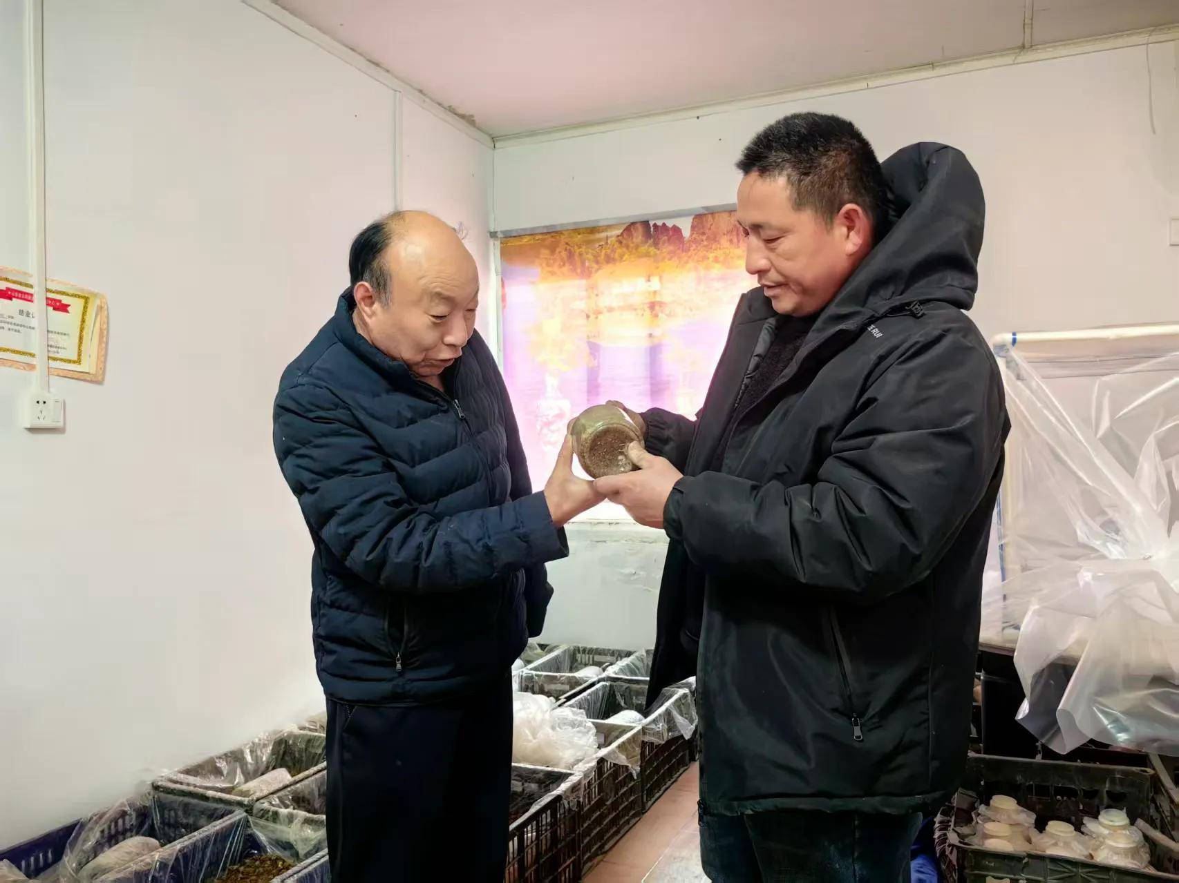 丁伦保在丁锦伦陪同下,看了林下大棚种植的羊肚菌、简易菌种室和工作室。