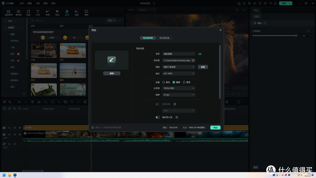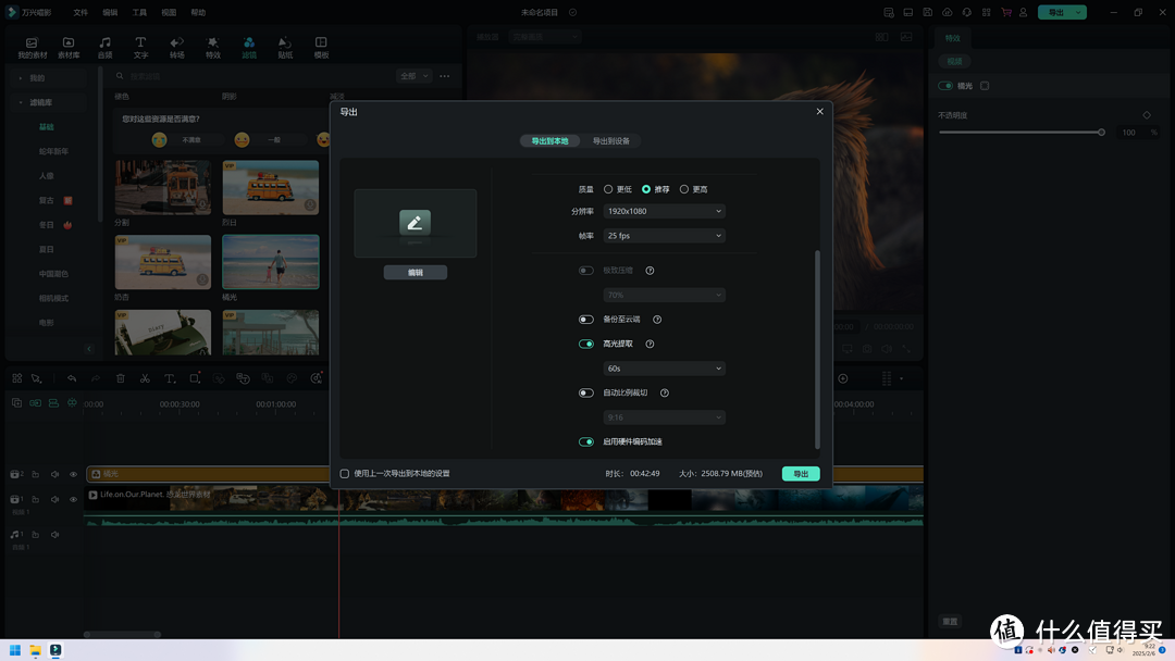 B580相比同价位显卡强的地方就在于影音生产性能,Xe2新架构在AI和编码支持上性能提升非常高。通过剪映剪视频的效果非常明显,输出相比我之前使用的中高端N卡,速度还要快上许多。